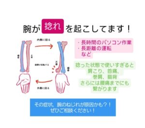 腕のねじれ 公開日:2025年10月24日 お知らせ スタッフの坂井です! 【腕の捻れ】 肩こり、首痛、寝違い、巻肩、腰痛 頭痛、顎関節症、呼吸が浅い などの症状に繋がります! 日頃捻った状態で長時間使用してないですか? 放置していないですか? セルフチェックしてみて捻れてるかも? と思ったらご相談ください! 関連記事 がんばります!ネモフィラああああああああ!やってしまった福は内!あしがつる月をパシャリ 投稿ナビゲーション 四十肩・五十肩不眠