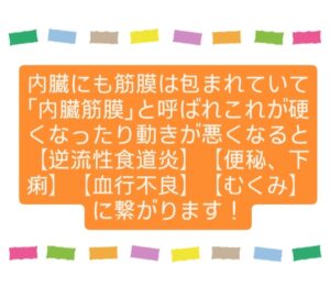 筋膜と内臓の関係性 公開日:2025年9月23日 お知らせ スタッフの坂井です! 【筋膜と内臓】 内臓にも筋膜は包まれています! その内臓筋膜が硬くなると、逆流性食道炎や過敏性腸症候群などの症状になります! また、そこから筋肉まで引っ張ってしまうと、 腰痛、肩首こり、姿勢の歪みにまで影響します!! これらの痛みや、不調はいくら筋肉をほぐしても改善しない場合があり、その背景に筋膜の状態、内臓の不調が隠されてます!! 当院でしっかり筋膜を剥がし、痛み不調を根本から改善しましょう!!! 関連記事 ☆入学式☆食生活2風邪をひかない体づくり②彼岸花!!梅雨入りしました☆コインパーキング出現!! 投稿ナビゲーション 交感神経・副交感神経10月のスケジュール