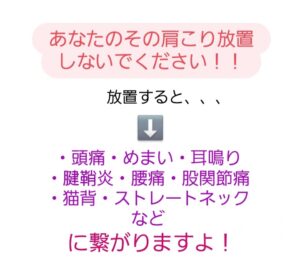 肩凝り 公開日:2026年4月20日 未分類 スタッフの坂井です! 【肩こりは万病の元?!】 ただの肩こりだと思って放置してないですか??? 肩こりを放置すると色々な症状へと繋がります! 早めの対処をやりましょう! ぜひ、ご相談、ご連絡お待ちしております! 関連記事 今月のニュースレター首の痛み坐骨神経痛を悪化させないために注意すべきポイント2ひと息つけてますか?坐骨神経痛を悪化させないために注意すべきポイント③ 投稿ナビゲーション 首の痛み